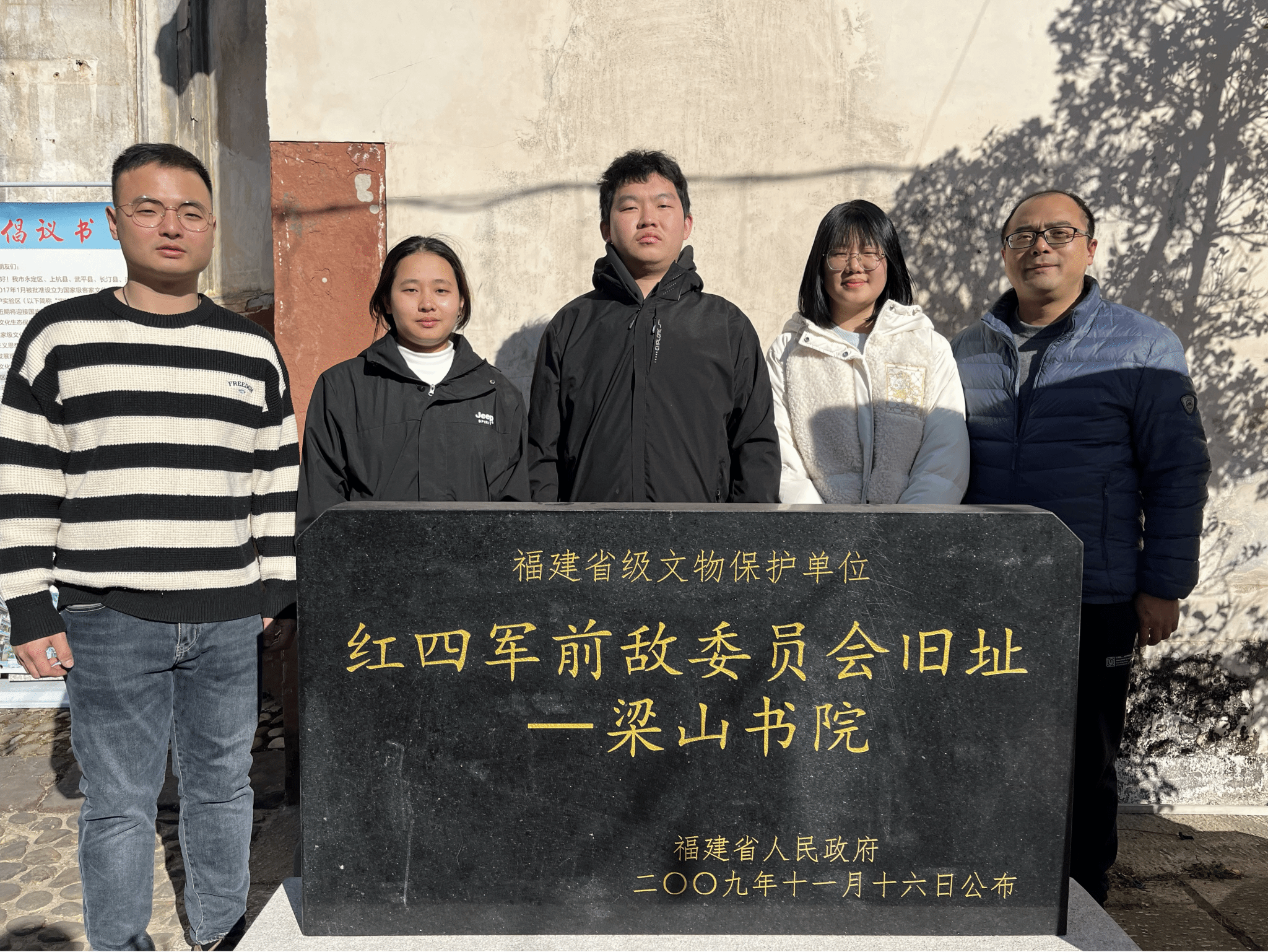 2025年1月17日经济管理学院“闽西薪火传承”龙岩实践队参访了福建省级文物保护单位红四军前敌委员会旧址——梁山书院。实践团队成员参观了解了梁山书院的基本概况和建筑特色,认真聆听了毛泽东领导的红四军三次进入武平的历史事迹。经济管理学院党总支专职副书记彭阔东老师在梁山书院结合龙岩革命历史发展,为实践队师生讲述了《一盏明灯》的故事,伯公凹上那盏不灭的灯已经坚定方向的信仰之灯,传承着一种坚贞不屈、奋勇向前的精神。彭阔东副书记勉励实践队成员学习革命先辈永不放弃的精神不断提高自身素质,自觉担负起新时代责任,学以致用建设家乡