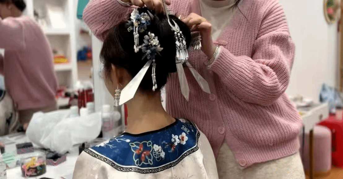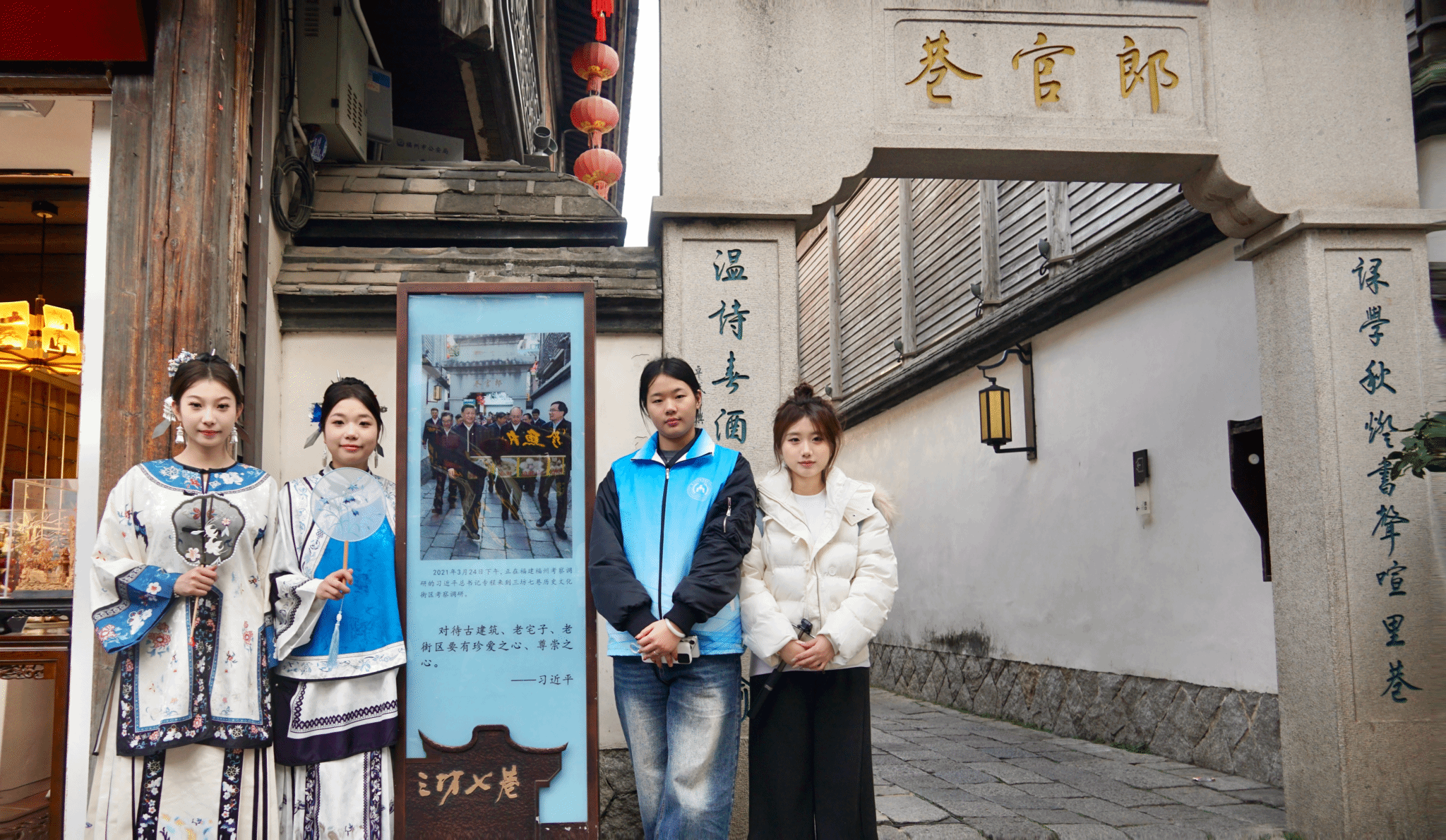 青衿榕韵实践队前往多家妆造馆,观看了“三条簪”的各种装束,通过近距离观看,更直观地认识到“三条簪”的独特美学。实践队成员还学习并体验了“三条簪”妆造,古韵新生,进一步感受传统非物质文化遗产的深厚底蕴。化身“古人”的实践队员们追寻领袖足迹,一同前往上下杭、三坊七巷等著名景区拍摄,漫步在千年闽都的白墙黛瓦间,仿佛“穿越”百年时空。