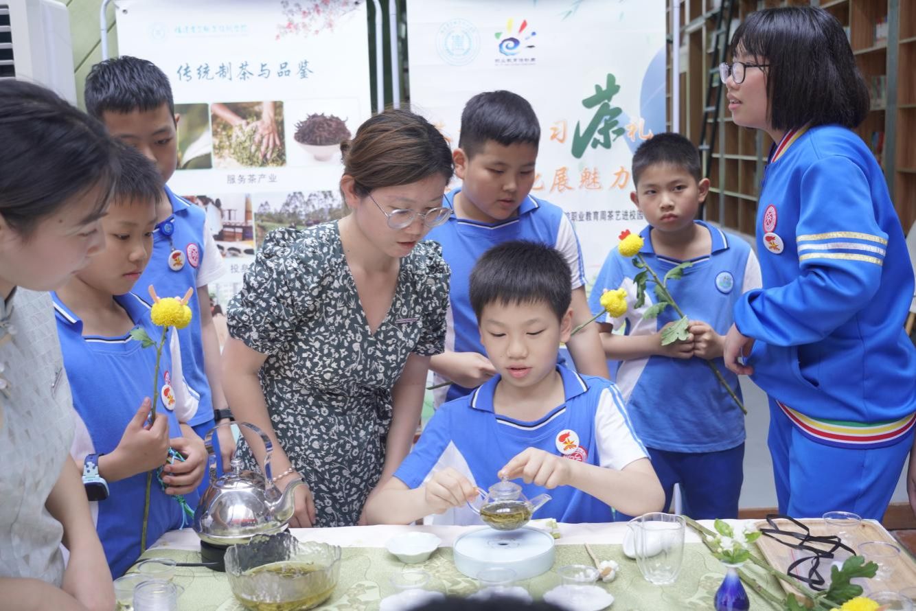 组织花卉生产与花艺、茶艺与茶文化两个专业的学生前往福清市行知小学开展“花艺·茶艺传统文化进校园”志愿服务活动。省级肖晓梅技能大师工作室负责人肖晓梅老师给小学生介绍中华花艺的基本知识,并现场演示中式传统插花--盆花的制作方法,花卉生产与花艺专业学生悉心指导小学生进行插花作品的制作。茶艺与茶文化专业陈丹老师向小学生详细介绍了茶与健康和茶艺基础知识,并让茶艺专业学生手把手教小学生体验宋代点茶、福州茉莉花茶冲泡、立夏蛋兜、七大茶类展示与品鉴等项目。通过活动,展示了学生的专业素养,增强学生的职业认同感和荣誉感。