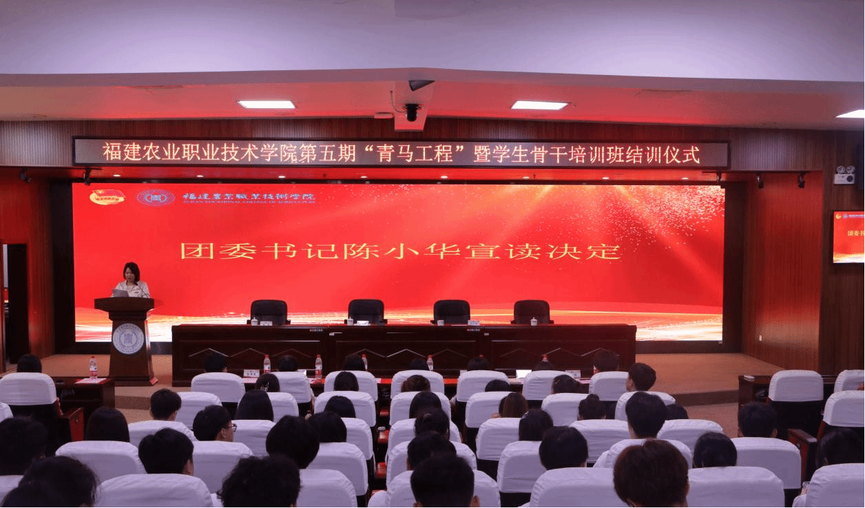 踔厉奋发,砥砺前行,在理论学习和实践活动的历练下,119名学员通过考核如期结业。团委书记陈小华宣读《关于第五期“青马工程”暨学生骨干培训班准予结业和表彰先进的决定》。