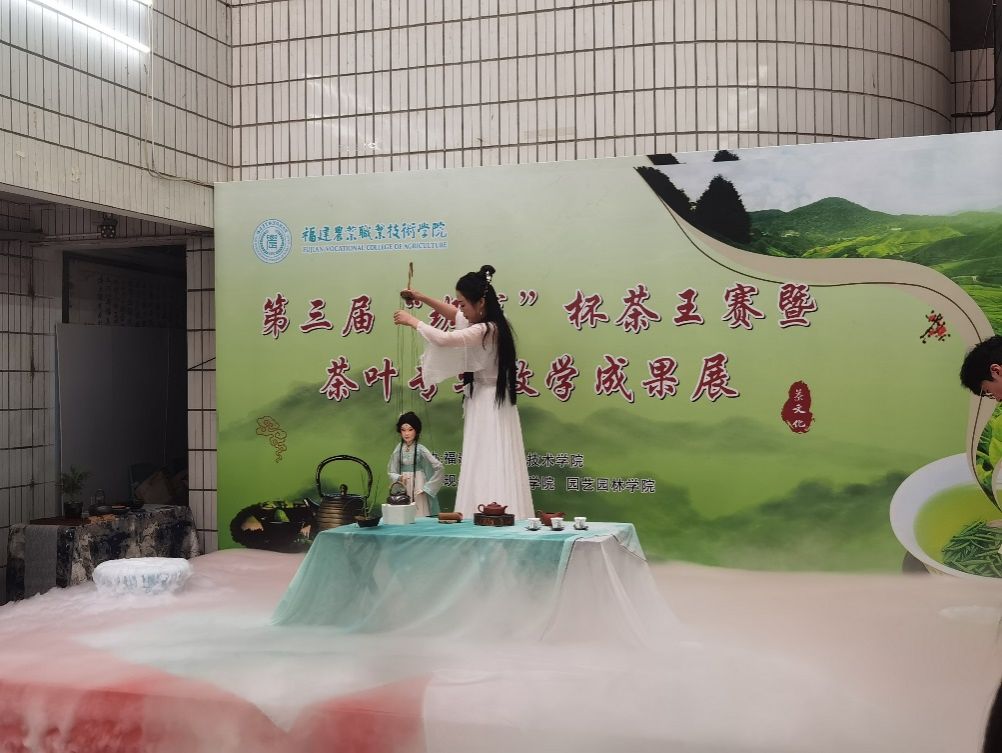 此次茶王赛由新农16级茶叶专业班长彭能华同学赞助并冠名。活动现场,学员们品茗交流,也带来了精彩的表演。古琴弹奏、插花表演、少儿茶艺展示以及非遗木偶茶艺表演引人入胜,赢得台下观众阵阵掌声。
