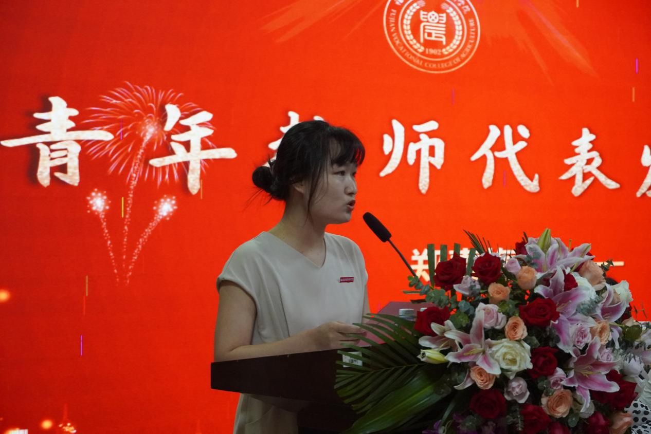 郑素梅博士作为青年教师代表发言,她分享作为青年教师的心得与体悟,感谢学校给青年老师成长提供广阔平台。作为青年教师应当不断提升自我,强师德师风、强业务能力、强责任情怀,为学校“三步走”战略目标的实现做出应有的贡献。