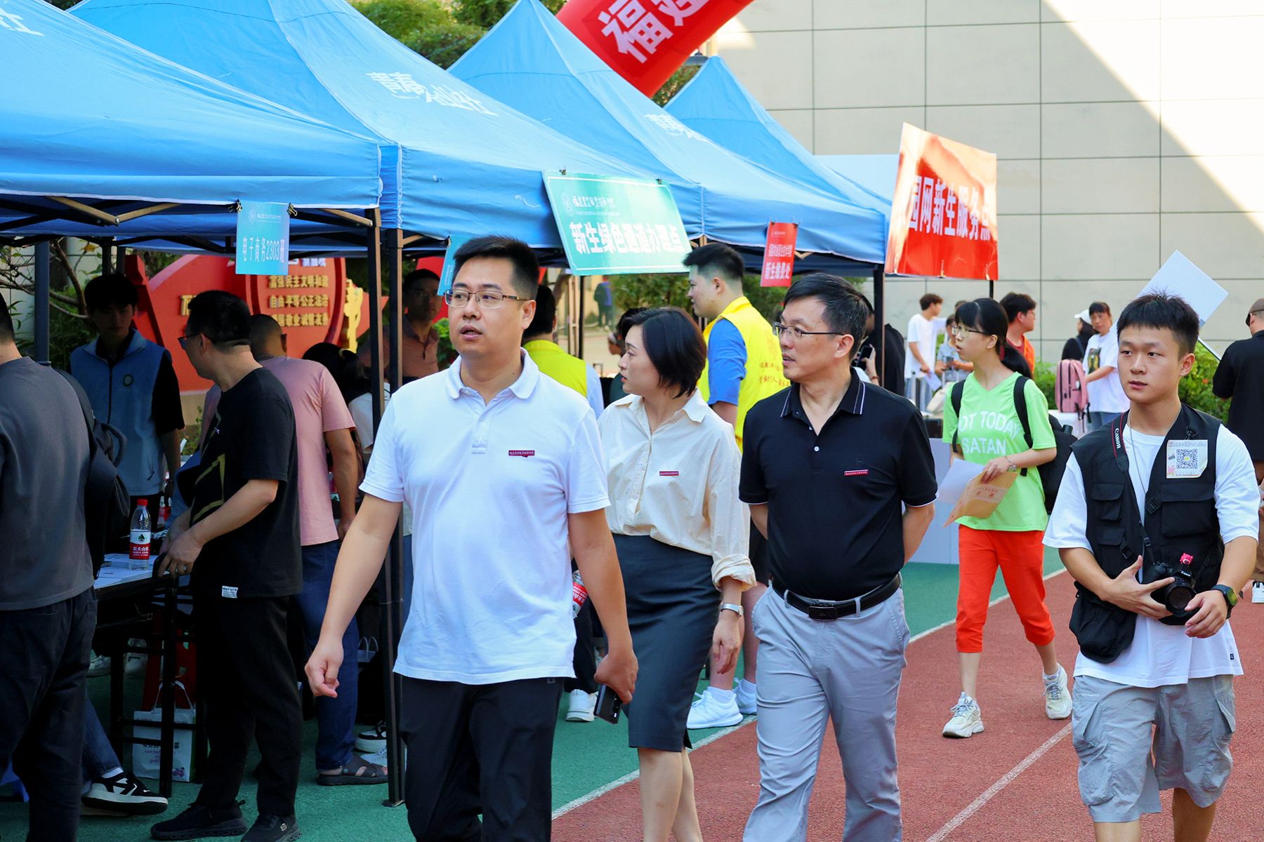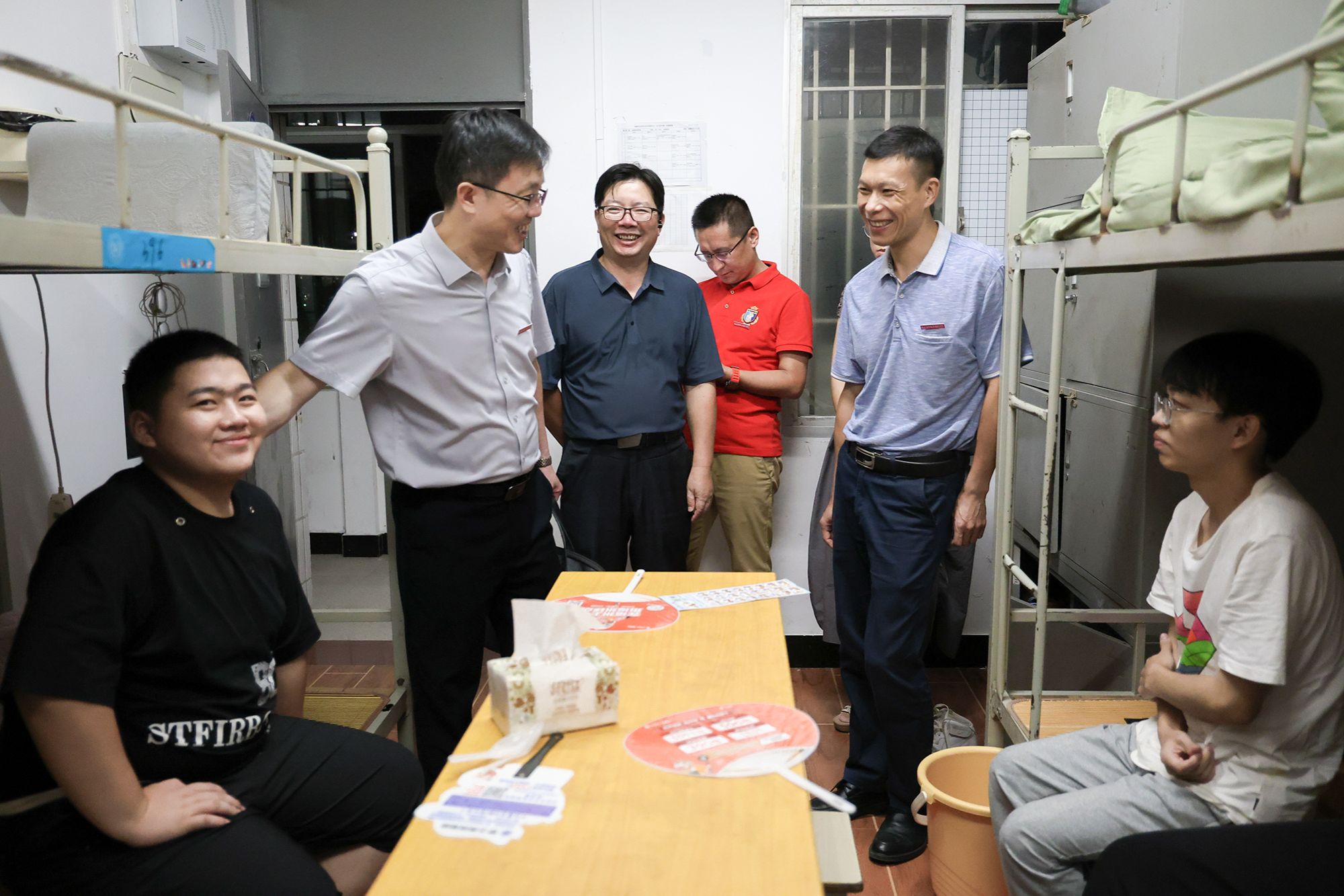 何东进校长(左二)、严挺文副校长(左三)到软件园校区看望新生