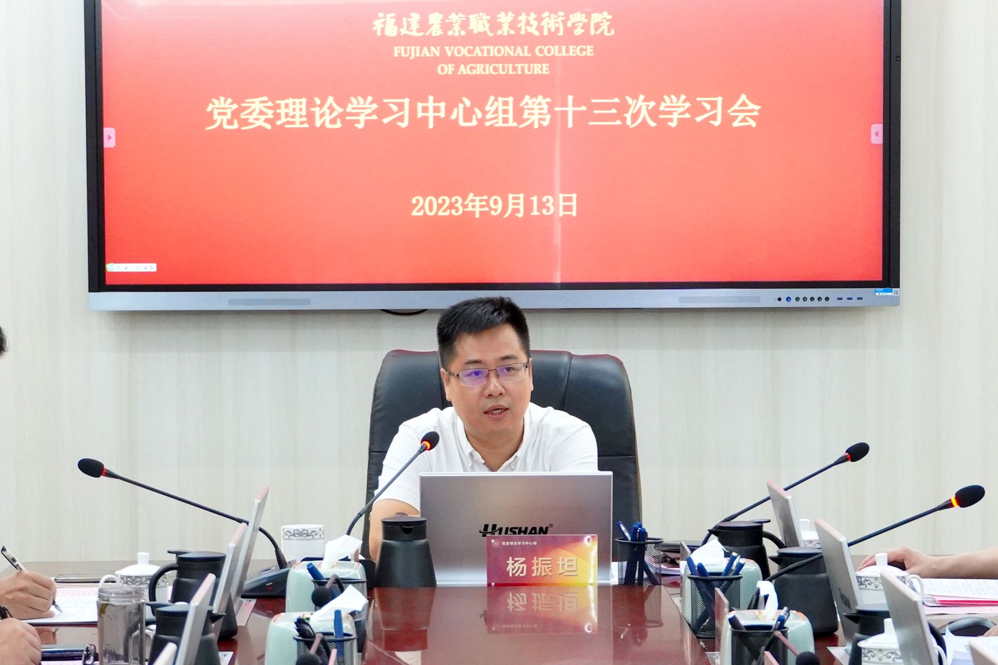 9月13日,学院党委杨振坦书记主持召开2023年第13次党委理论学习中心组学习会,传达学习习近平总书记重要讲话重要指示批示及重要文件精神。党委理论学习中心组全体成员参加学习会。