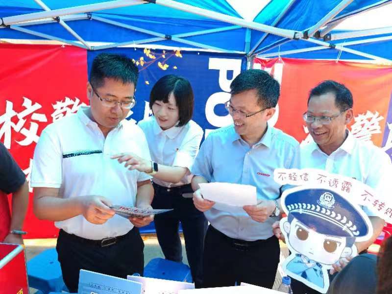 9月12日,是2023年国家网络安全宣传周校园日,也是开元(中国)部分学院2023级新生报到日。当天起,校园里设置了2个网络安全宣传活动点,通过现场发放《国家网络安全宣传手册》、播放国家网络安全宣传片、现场扫码答题有奖活动、现场抽题问答有奖活动等形式,吸引了大批师生驻足参与。活动邀请了镜洋镇政法委员、武装部部长王为平、镜洋镇派出所警官严泽炜、福清网安大队成员等到场指导,我院党委书记杨振坦、党委副书记、院长何东进、党委副书记王振亮、纪委书记陈坛春等人亲临现场参与活动,现场气氛十分热烈。