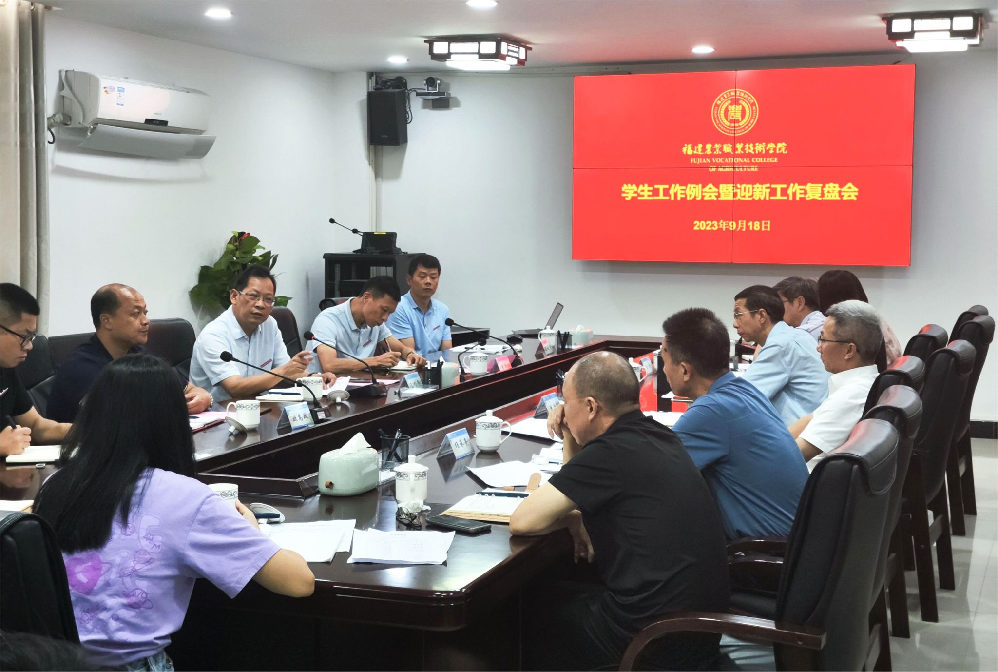 凝心聚力启新程,笃行务实谋新篇。9月18日上午,2023年秋季学期初学生工作例会暨迎新工作复盘会在闽台楼708会议室召开。学院党委副书记王振亮,相关职能部门负责人、各二级学院党总支书记、学工办负责人以及学工部全体成员参加了会议。会议由学工部部长欧高政主持。