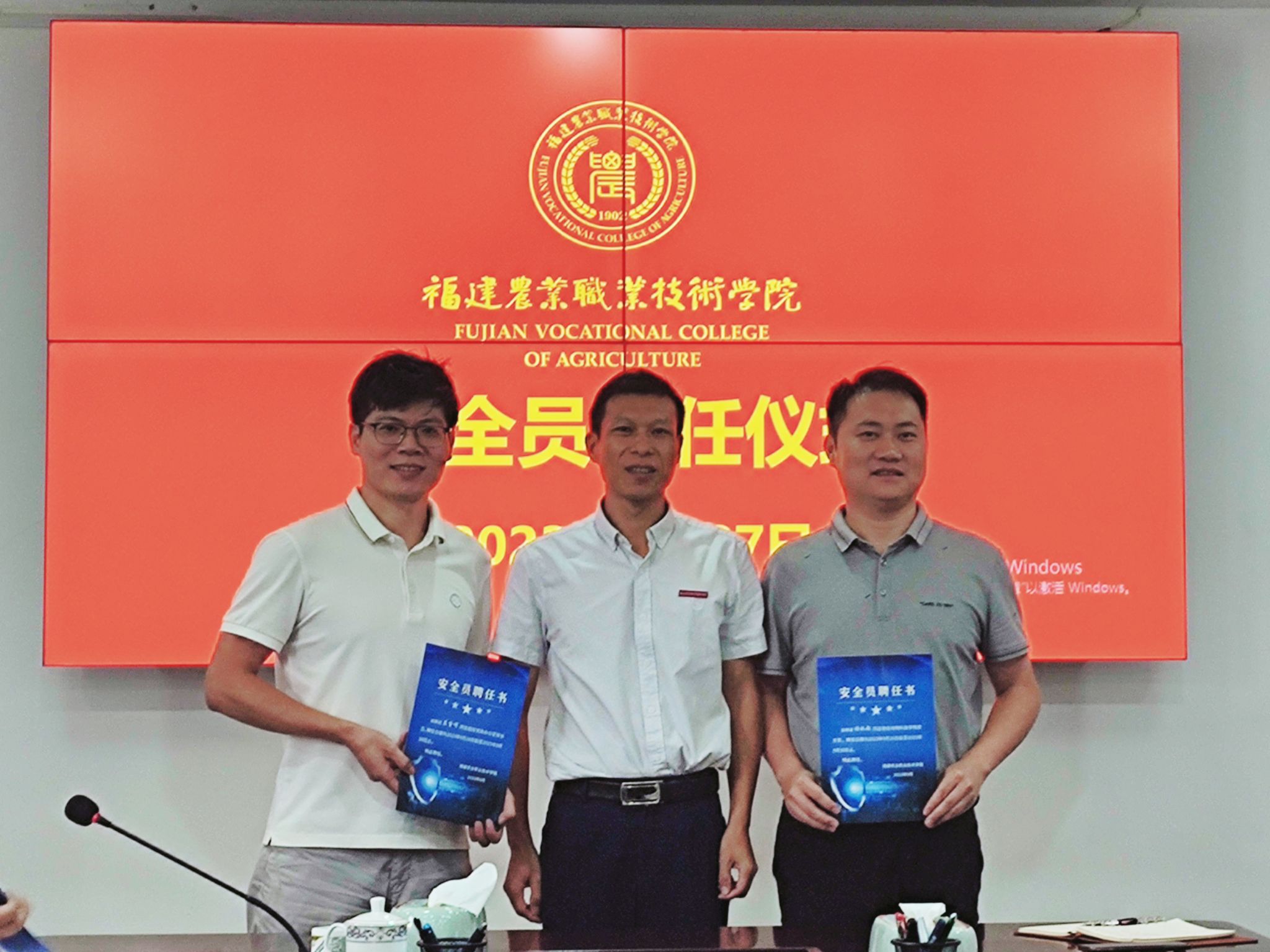 会上,安全保卫处陈剑波副处长传达了全省学生交通安全提升行动暨秋季学期学校安全工作视频会议精神,以及教育部办公厅《教育系统重大事故隐患排查指引(试行)》《福建省教育厅关于进一步做好学校安全工作的通知》等文件精神,并结合视频会议精神和文件要求,围绕交通安全、隐患排查治理、重点领域整治、安全主题教育和国庆、中秋假期安全工作进行了具体的安排部署,并为各二级单位安全员发放聘任书。