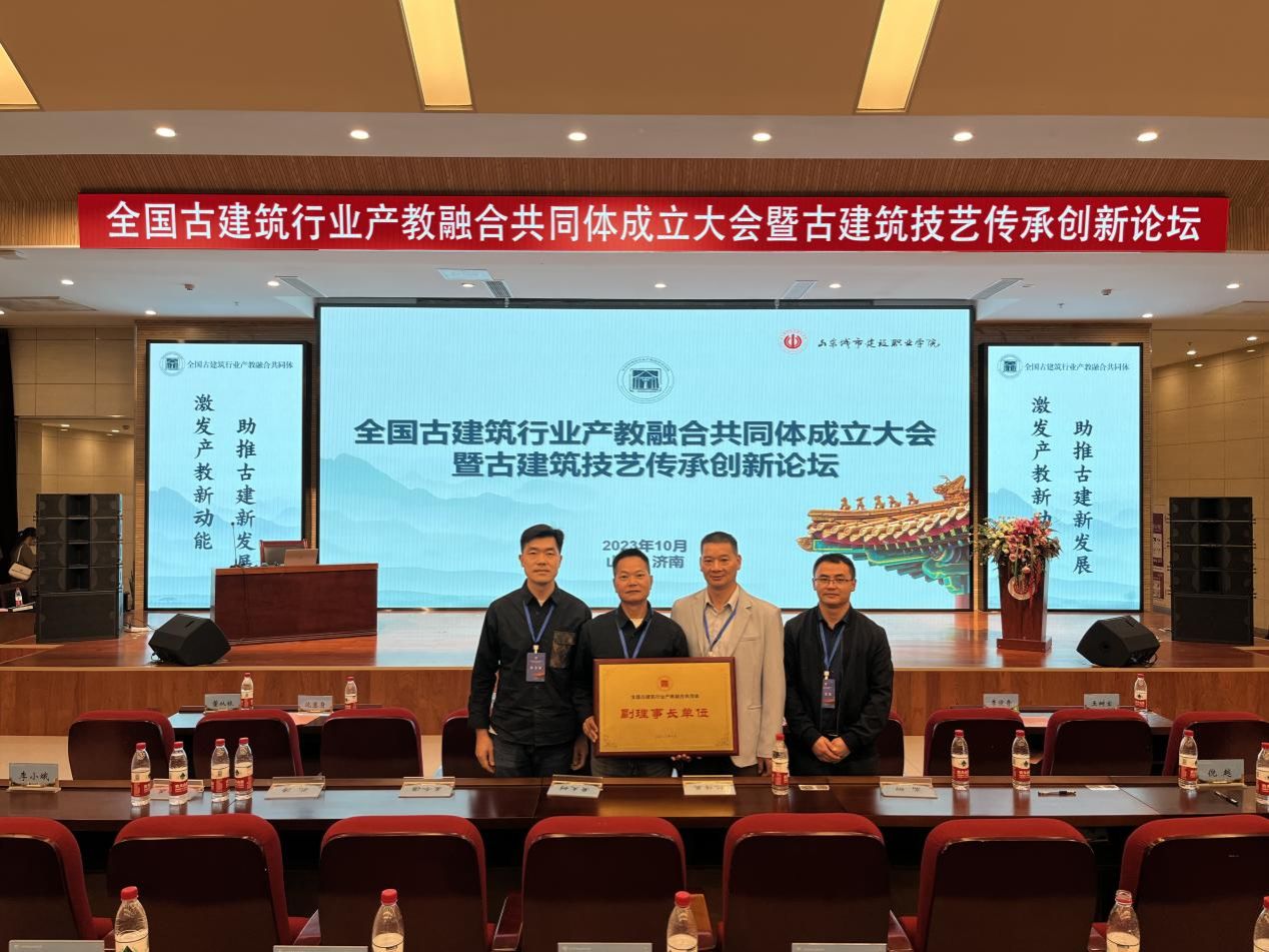 全国古建筑行业产教融合共同体是由山东曲阜市园林古建筑工程有限公司、北京建筑大学、山东城市建设职业学院牵头组建。共有来自全国94家共同体成员单位代表及师生代表300余人参加会议。该共同体的成立,将有效推进现代职业教育体系建设改革,切实提高职业教育的质量,培养更多高素质技术技能人才、能工巧匠、大国工匠,为加快建设教育强国、科技强国、人才强国奠定坚实基础。