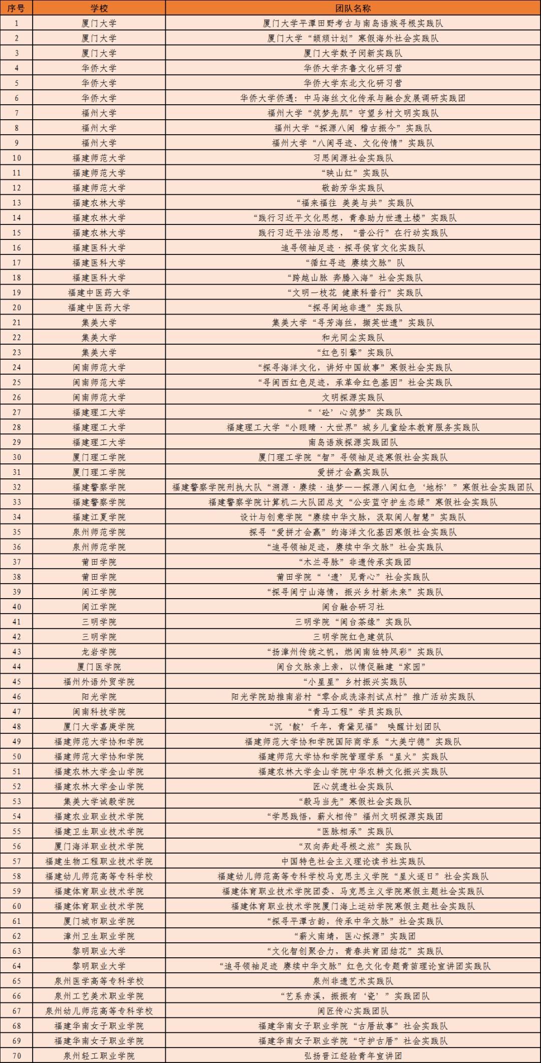 二、优秀实践团队(70个)