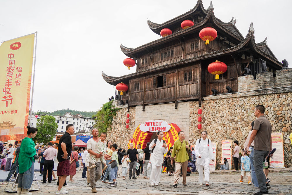 武夷山的茶、建瓯的酒、浦城的桂花蜜、和平镇的百香果、厦门的红宝石青柚、福建省农业科学院的双色火龙果……金气秋分,丰收正当时。9月22日,福建省2024年中国农民丰收节主场活动在邵武市和平古镇举行。来自全省各地及农业科研院校的1000多款特色农产品在“福农优品”展示展销活动中亮相。